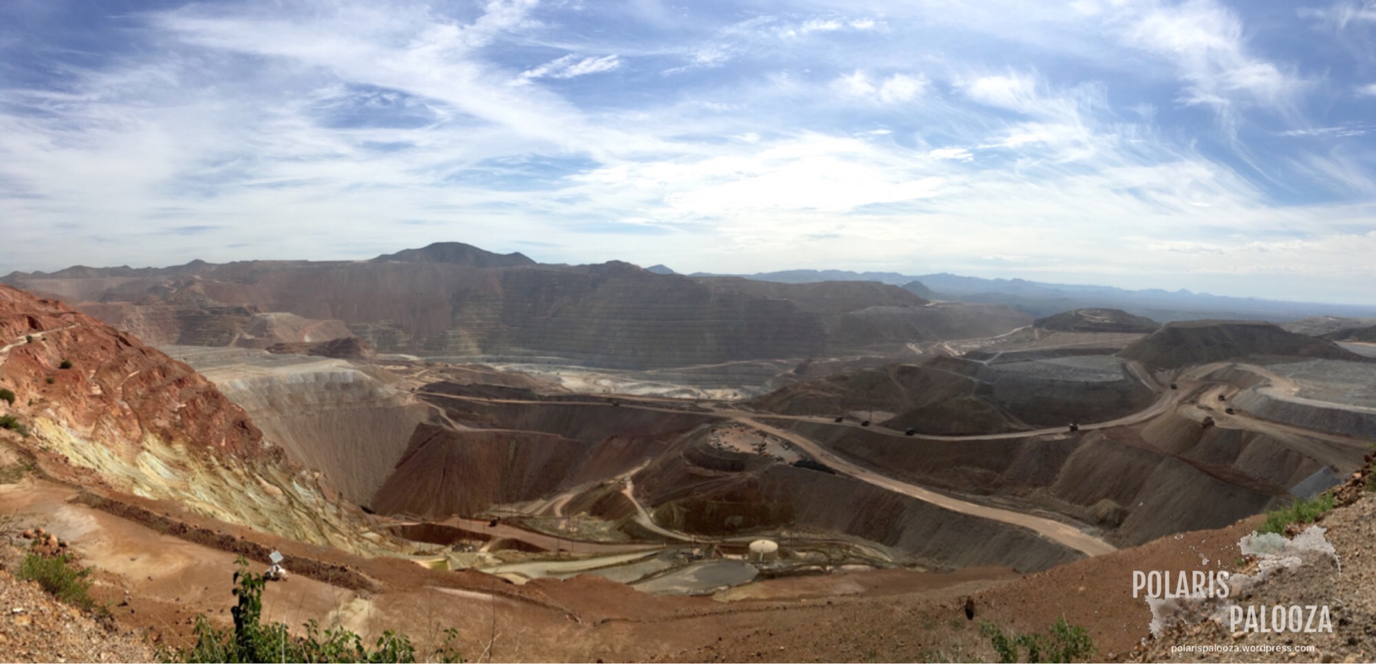 Just past Morenci, along the way. on the right, there will be a pull off to stop and look at the mine. Morenci mine is the largest open pit mine in North America. It looks like a man made Grand Canyon! They mine all sorts of metals here, but copper is the main stay.