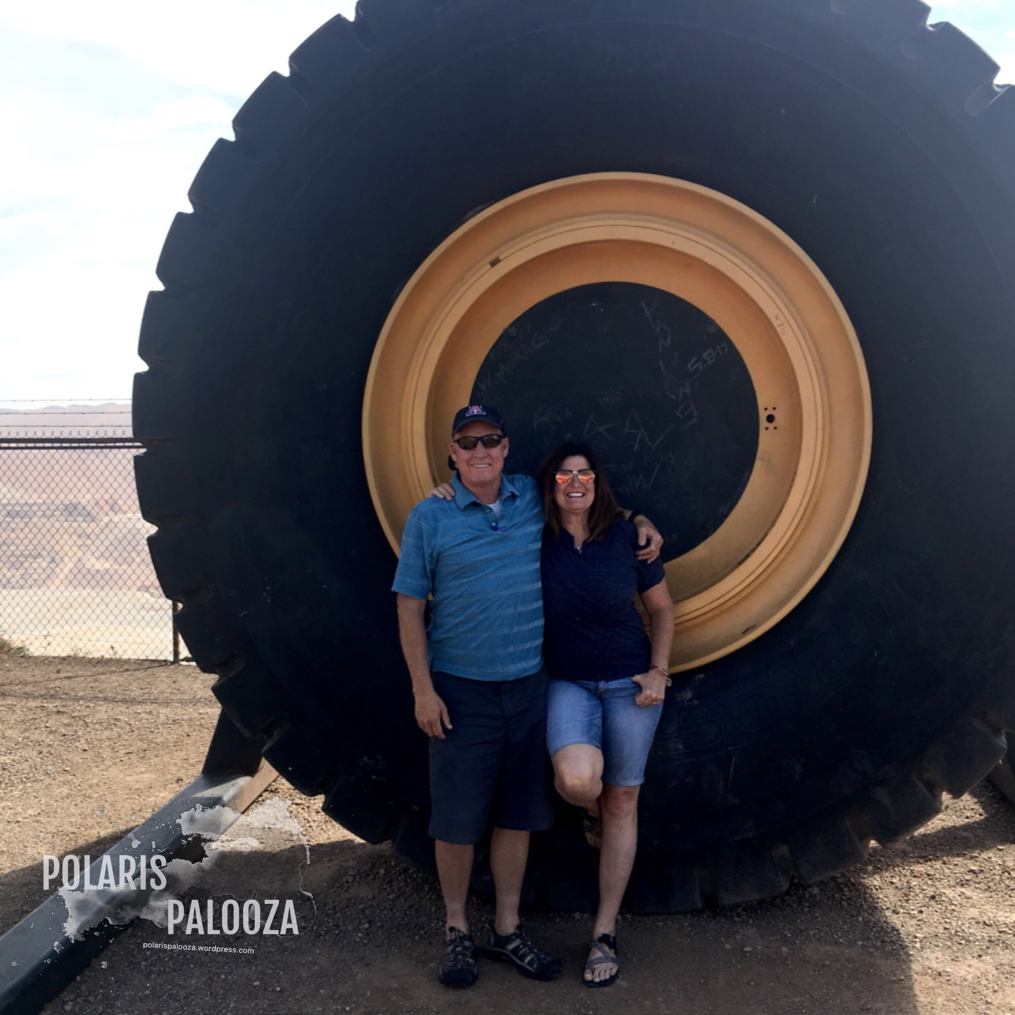 We had to get a picture by the tire of one of the mine trucks. They are HUGE! I hear that one of those mine trucks can roll over a full sized truck with no problems at all!