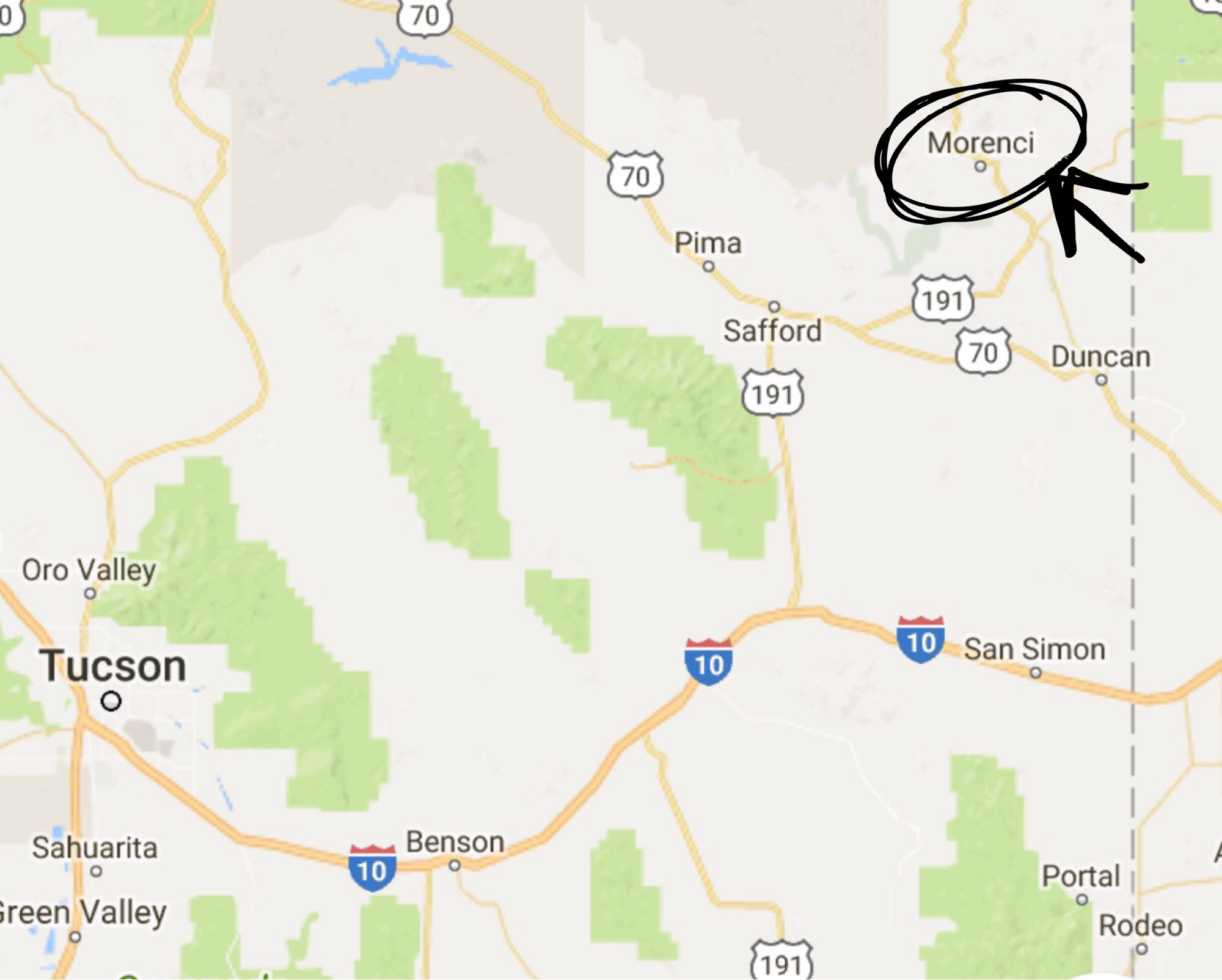 About three hours Northeast of Tucson and Phoenix is the little mining town of Morenci. It is almost on the New Mexico border. If you take the trip here, you wont be sorry. Take Hwy 191 to Morenci it turns into the Coronado Trail.