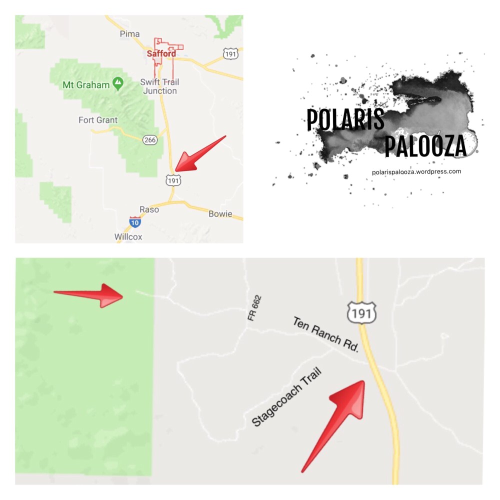 The starting point is Ten Ranch Road which is located on Hwy 191 in between I-10 and Safford. Closer to I-10 .