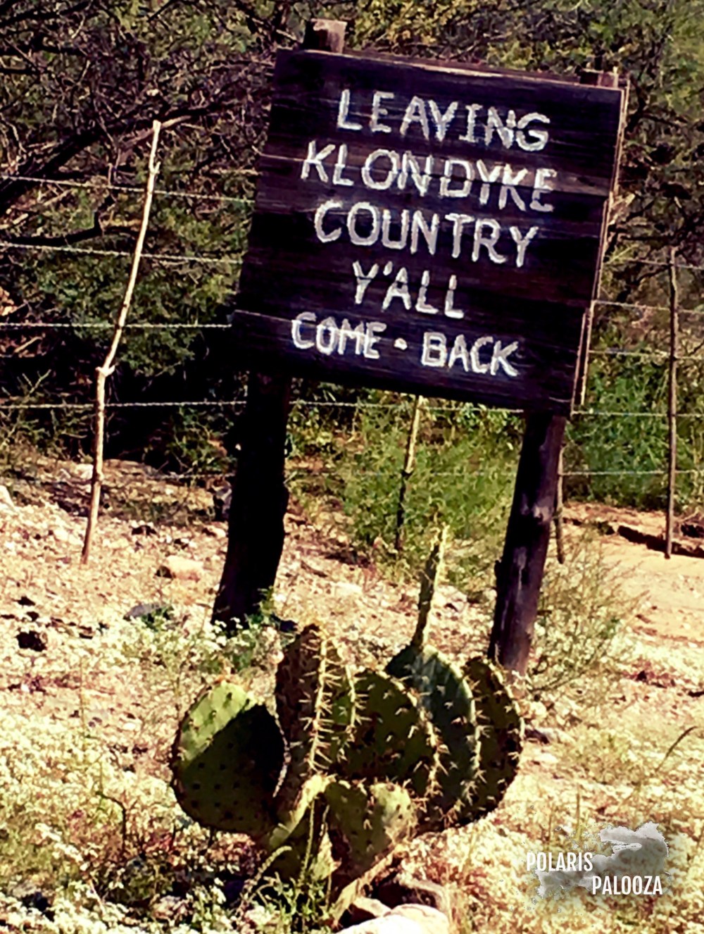 From the turn off, you will drive on a well maintained dirt road for about 20 miles. The mountain desert views are beautiful along the way. When you reach the end of the road, turn right until you come to the old Klondyke store. There is plenty of parking there, not to mention a nice look into the past.