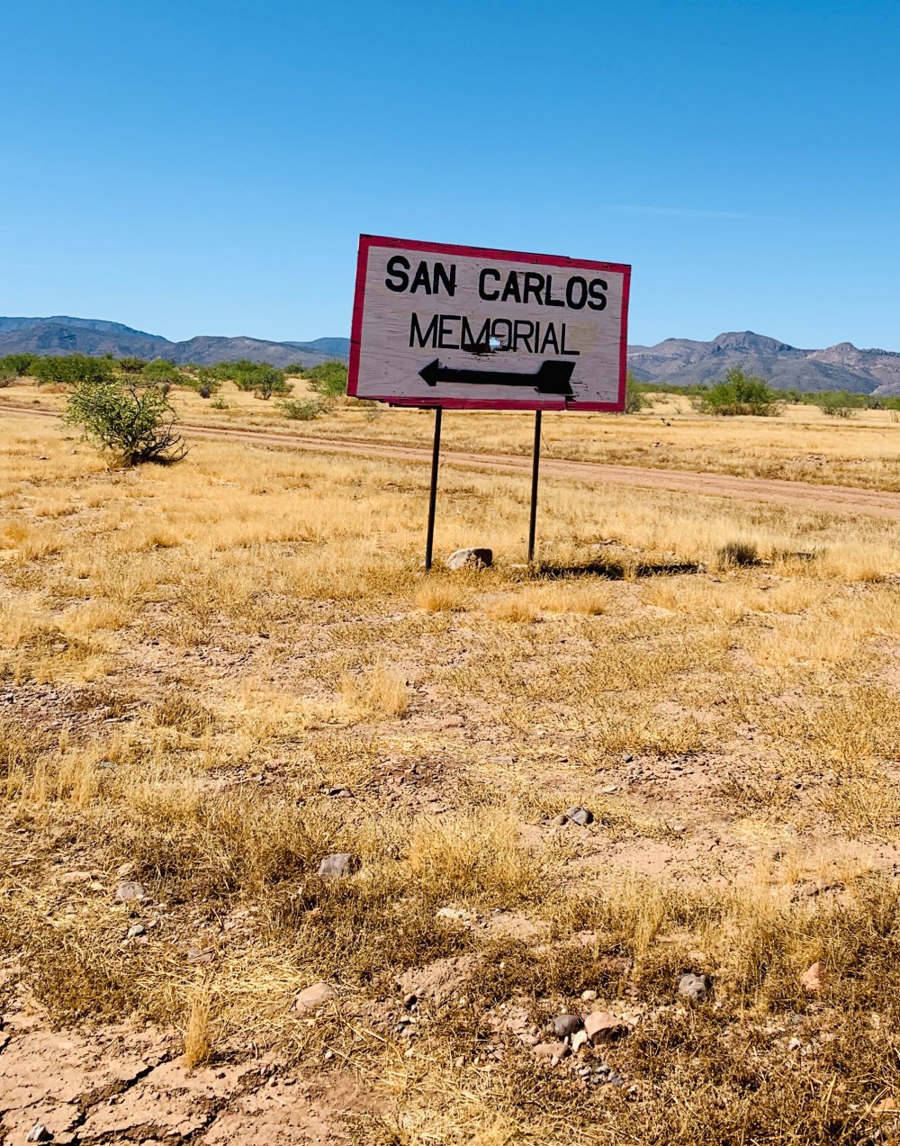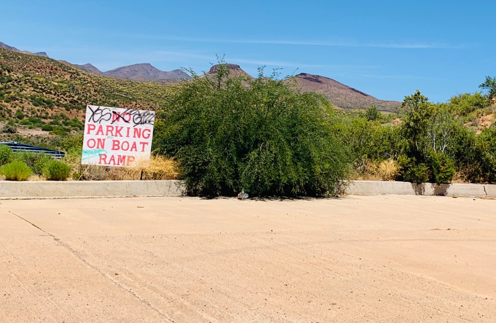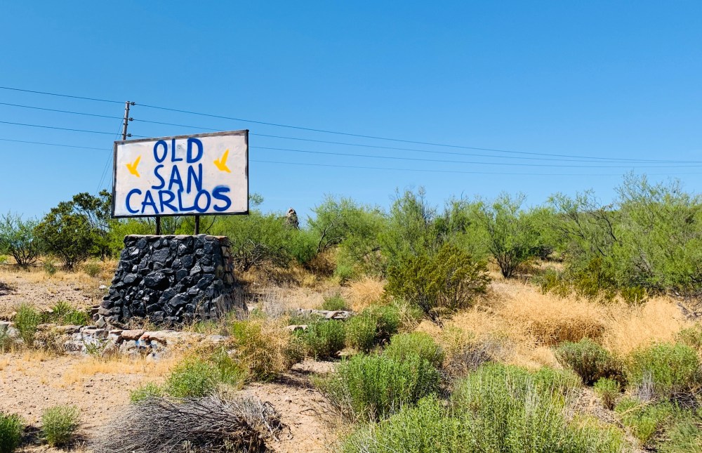 For a bit more safety, we parked in the Bashas parking lot and unloaded there. We then proceeded to Hwy 170 and went under the overpass southwards towards the lake. We kept on the main road until we came to the sign that pointed to Old San Carlos.