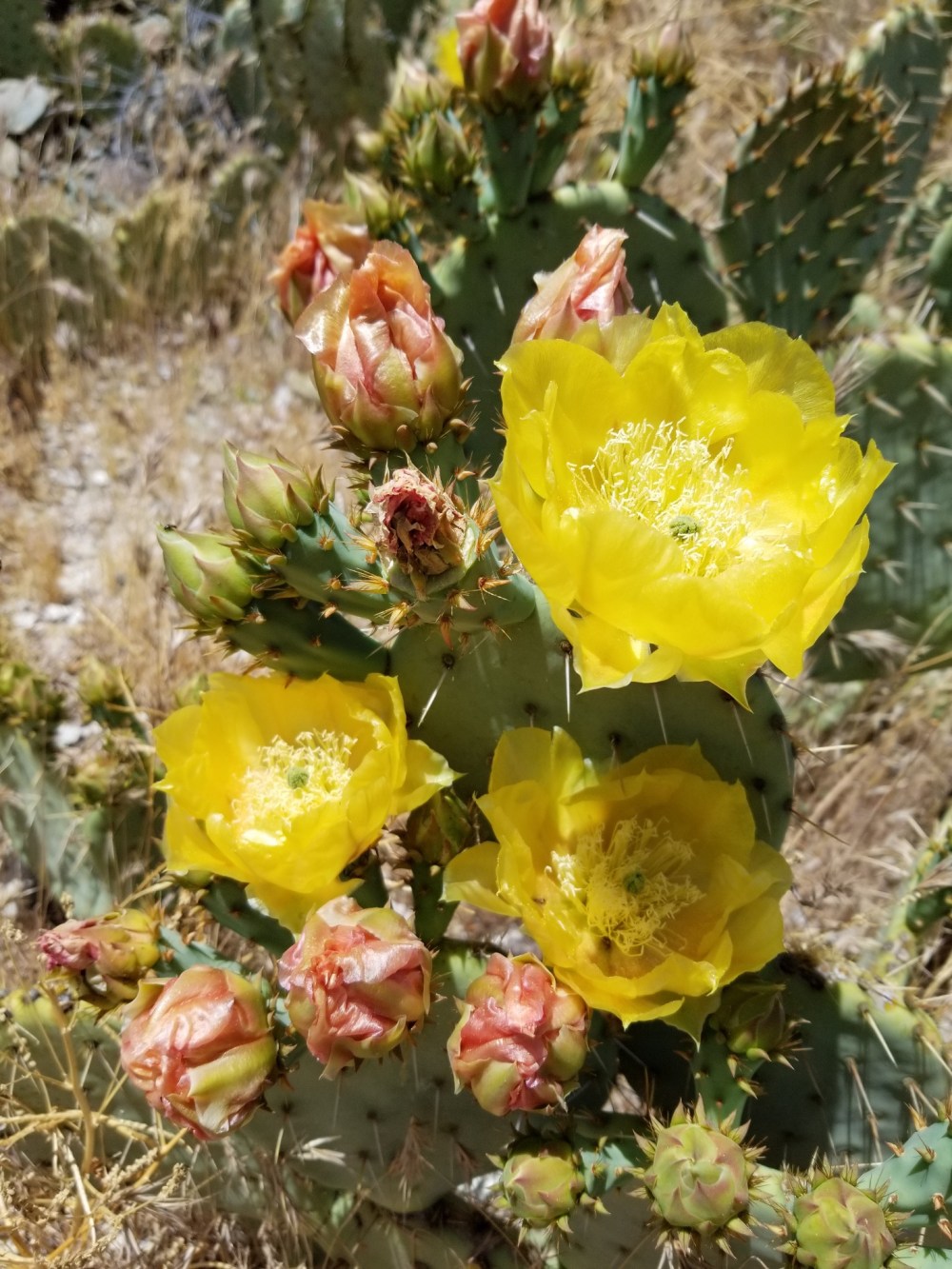 The cacti were amazing. We went from scrub brush to blooming Yucca, from massive quantities of cholla to prickly pear and saguaros.